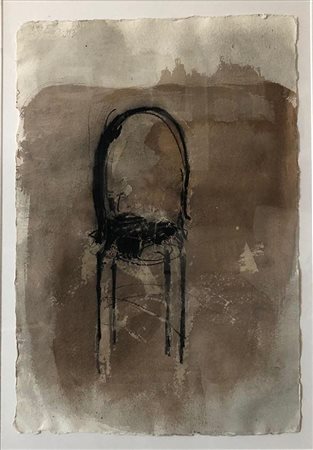 Lot 22 Mimmo Paladino, Tecnica mista e collage su cartoncino, 52x74 cm, Senza titolo, Autentica dell'artista su foto.