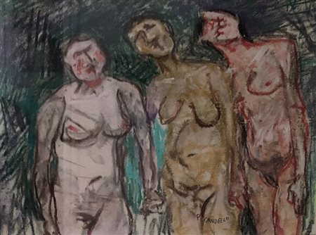 Lot 18 Fausto Pirandello, Pastelli su carta, 22x28 cm, Tre nude nel bosco, 1967 ca. Autentica Fondazione Fausto Pirandello.