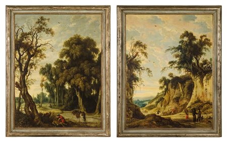 Lot 0005 Jan Wildens Anversa 1586-1653 coppia di oli su tela 'paesaggio con il buon samaritano' 'paesaggio con figure' uno con traccia di firma e data in basso a sx