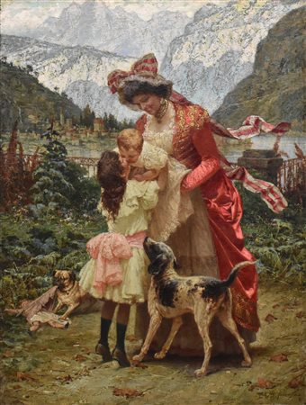 Raffaele Armenise 1852/1925 'Maternità' olio su tela firmato in basso a destra