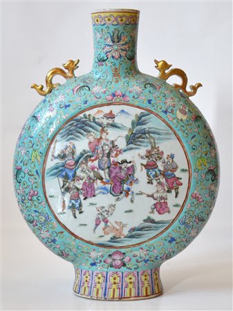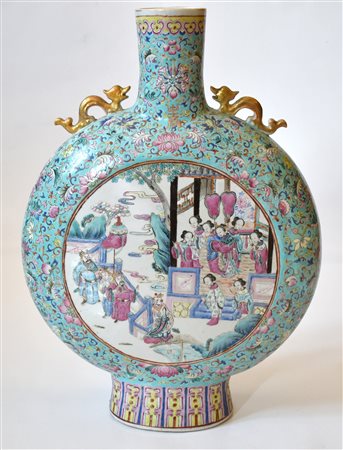 Lot 0015 Cina grande vaso a fiasca in porcellana decoro famiglia verde