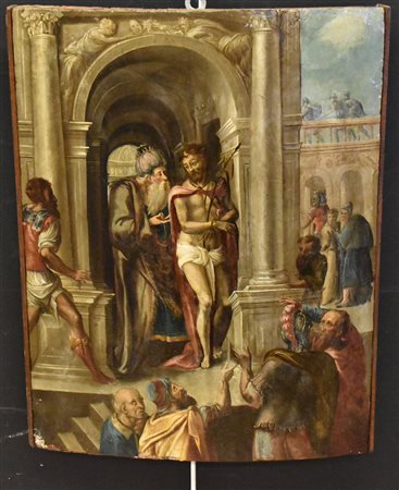 Lot 0018 dipinto su tavola'Processo a Gesù con Ponzio Pilato' Toscana sec.XVI 47x35 cm