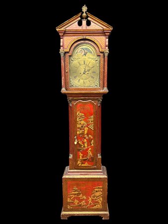 Lot 0020 pendola da terra laccata a cineseria su fondo rosso movimento con fasi lunari firmata I.Bagnall Dudley Inghilterra inizio sec.XIX