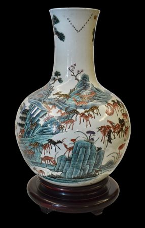 Lot 0023 Cina vaso in porcellana dipinta decorato con il motivo dei cento cervi