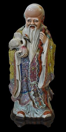Lot 0024 Cina scultura in porcellana policroma 'Shou Xiang con fenicottero e pesca'