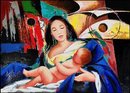 Lot 19 FARINELLI EZIO Rieti 1937 "Maternità" Serigrafia su cartone pesante cm 70x50. Firmata sul fronte in basso a sinistra, esemplare P.A. a destra. Opera pubblicata a pag. 15 del catalogo Grafica d'Autore.