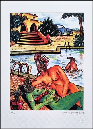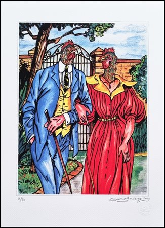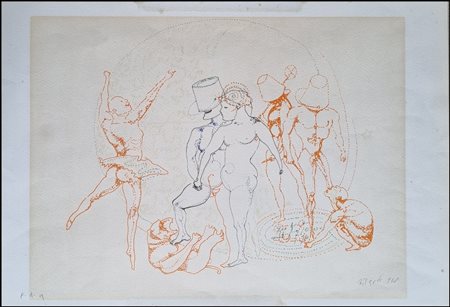 Lot 26 SAUVAGE MAX HAMLET Gallipoli 1950 "Eros party" Litografia su cartoncino cm 32x44 del 2019. Firma, data e timbro a secco sul fronte in basso a destra, tiratura 8/50 a sinistra.