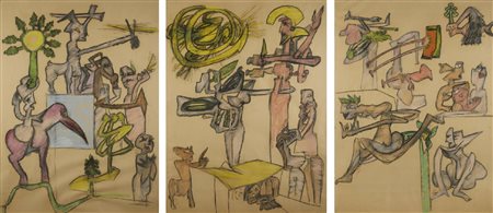 Pubblicazione: Matta, Verbo America, cit. Ispirato da Ruben Darìo, Elio, in Id., Canti di vita e di speranza, 1905, trittico, 1982, tav. 46,47,48.