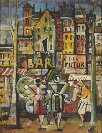 Lot 9 BALDESSARI ROBERTO MARCELLO IRAS (1894 - 1965) Banca d'Italia Futur. . Tecnica mista e collage su tavola. Cm 34,50 x 44,50. 1922 circa. Firma in basso a sinistra. Al retro cartiglio Galleria Poma, Morcote. Opera archiviata presso l'Archivio Unico per il catalogo delle opere futuriste di Roberto Marcello Baldessari - Maurizio Scudiero, Rovereto, come da documentazione allegata all'opera riportante il relativo numero d'inventario. Provenienza: Galleria Poma, Morcote; Collezione privata, Morcote (Ch).