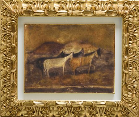 Lot 15 MUSIC ANTONI ZORAN (1909 - 2005) Cavallini che passano. 1951. Olio su tela . Cm 47,00 x 35,50. Firma e anno in basso al centro. Al retro titolo, firma e anno. Autentica su fotografia di Ida Cadorin Music datata 9 Febbraio 2005.