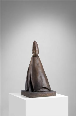Lot 17 MANZU' GIACOMO (1908 - 1991) Cardinale. 1972. Bronzo. Cm 24,50 x 50,00 x 23,00. Esemplare unico. Firma punzonata al retro. Opera archiviata presso la Fondazione Giacomo Manzù, Aprilia, come da documentazione allegata all'opera riportante il relativo numero d'inventario.