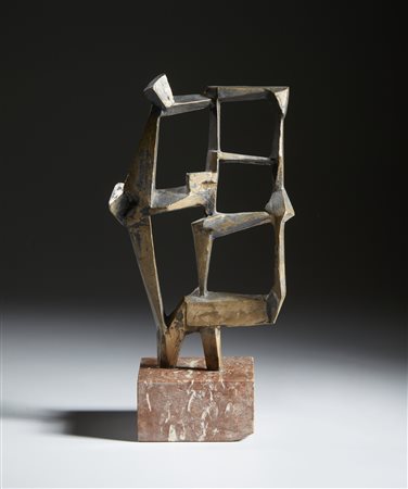 Lot 18 CONSAGRA PIETRO (1920 - 2005) Plastico in bronzo "Piccolo favore". 1953. Scultura in bronzo fuso a cera persa. Cm 21,00 x 33,00 x 7,50. Esemplare unico. Firma non presente. Opera archiviata presso l'Archivio Pietro Consagra - Gabriella Di Lilia, Milano, come da documentazione fotografica allegata all'opera. Dimensioni con base in marmo: 42x21 cm.