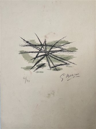 Lot 12 BRAQUE GEORGES (1882 - 1963) L'étang. 1963. Litografia. Cm 28,00 x 38,50. 64/75. Tiratura e firma in basso a matita. Stampatore: Mourlot, Paris. Editore: Engelberts. Edizione totale: 75 +XV esemplari. Pubblicazioni: Braque - The Complete Graphics, Catalogue Raisonne, Dora Vallier, Gallery Books, W.H. Smith Publishers, NY, 1982, n° 187; Mourlot n° 119. Difetti.