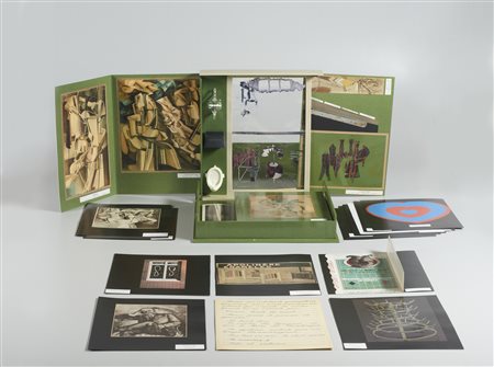 Lot 17 DUCHAMP MARCEL (1887 - 1968) De ou par Marcel Duchamp ou Rrose Sélavy (Boîte-en-valise) - series G. . 2015. Multiplo. Cm 27,00 x 8,00 x 28,00. Facsimile dell'Edizione serie G 1968 + diapositiva con Mulino ad Acqua. Progettato e edito da Mathieu Mercier, supervisione dell'Associazione Marcel Duchamp. Pubblicato da Verlag der Buchhandlung Walther König, Köln.