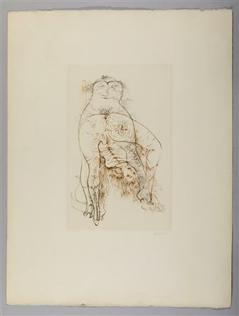 Lot 18 BELLMER HANS (1902 - 1975) Senza titolo. Calcografia. Cm 50,00 x 65,50. 51/150. Tiratura e firma in basso a matita. Filigrana Arches France. Dimensione lastra: 37x23.5 cm.