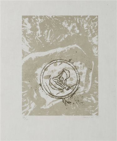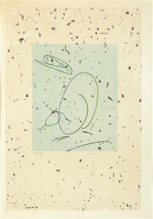 1962 Torino, Mostra Galleria Narciso;1962 Torino, Mostra Galleria Viotti;1962 Roma, Mostra Calcografia, n. 457;1967 Gradisca d' Isonzo, Mostra a cura di G. Marchiori;1967 Rimini, Sala dell' Arengo;1972 Roma, Galleria Marino;1975 Roma, Mostra Galleria Don Chisciotte, n. 37;1978 Sasso Marconi (Bologna), Mostra Antologica;1983 Roma, Galleria L' Attico-Esse Arte;1989 Macerata, Palazzo Ricci Mostra Antologica, n. 182;1994 Ancona, Mole Vanvitelliana;1997 Roma, Calcografia Nazionale;1998 Firenze, Gabinetto dei disegni e delle stampe degli Uffizi;1998 Santa Croce Sull' Arno, La Collezione Mino Rosi; 2003 Merano, Merano Arte;2018-19 Torino, Mostra 100% Italia - Museo Fico; 2019 Roma, Mostra Accademia di Belle Arti (altri esemplari). Lievi difetti. -