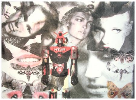 Lot 3 ROBERTO MALQUORI Castelfiorentino 1929 Robot 2009 Litografia di decollage a colori es.p. d’a. Firma e data in b. a d.; sul verso titolo, data, tecnica, misure e firma. (48 x 65,5 foglio e lito.)