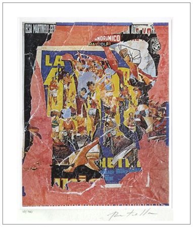 Lot 5 MIMMO ROTELLA Catanzaro 1918 – Milano 2006 Senza titolo Litografia a colori con interni serigrafici e collage es.43/100. Firma in b. a d. (38 x 35 foglio – 28,5 x 23 lito.)