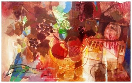Lot 13 PALMIZIO TOFANI Filettole 1920 – 1988 Composizione in rosso 1971 Olio su cartone telato 35 x 54,7. Firma in b. a d.; sul verso titolo, data e firma.