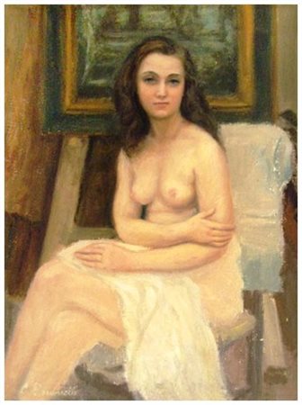 Lot 20 LEONARDO PIZZANELLI Torre del Lago 1920 – Firenze 1984 Modella in studio 1952 Olio su tela 40 x 30. Firma in b. a s.; sul verso misure e firma + etichetta Simone Vallerini Arte Antica e Moderna, Pisa + etichetta Associazione Archivi Artistici del ‘900 a Pisa, Pisa.
