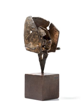 Lot 16 Luciano Minguzzi Bologna 1911 - Milano 2004 Piccolo guerriero, 1958 Scultura in bronzo, cm. 15,5 h. Firma su un lato: M / Minguzzi. Esposizioni: Grandi maestri, piccole sculture, da Depero a Beverly Pepper, a cura di Lara Vinca Masini, Pistoia, Palazzo Sozzifanti, 6 aprile - 30 giugno 2013, cat. pp. 304, 305, illustrata a colori.