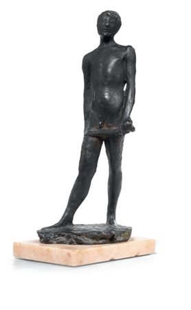 Lot 17 Giacomo Manzù Bergamo 1908 - Ardea (Roma) 1991 Bozzetto per il David, 1944 ca. Scultura in bronzo, cm. 28,5 h. Firma sulla base: G. Manzù. Opera registrata presso l'Archivio Manzù, Ardea. Esposizioni: Da Rodin al cielo di Yoko, Scultura in piccolo del XX secolo, Orosei, Centro culturale L'Ormeggio, 25 maggio - 25 settembre 2002, cat. pp. 32, 33, n. 10, illustrata a colori; Una collezione internazionale di piccole sculture del secondo Novecento, Malcesine, Castello scaligero, 11 giugno - 15 settembre 2005, cat. p. 52, illustrata a colori.