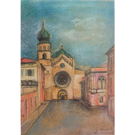 Lot 1 TOMASI A. - IL DUOMO DI TRENTO DA VIA VERDI 29X20 TECNICA MISTA SU CARTA