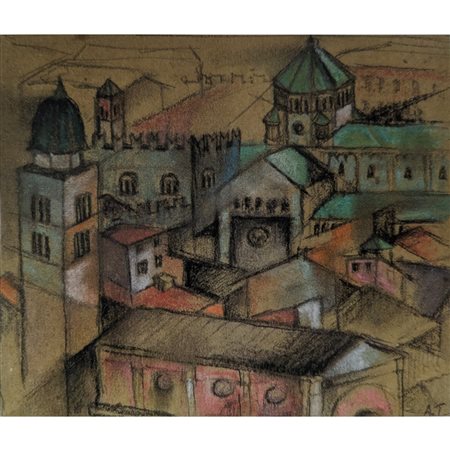 Lot 2 TOMASI A. - VISTA DELLA CITTÀ _ TRENTO 19X22 TECNICA MISTA SU CARTA