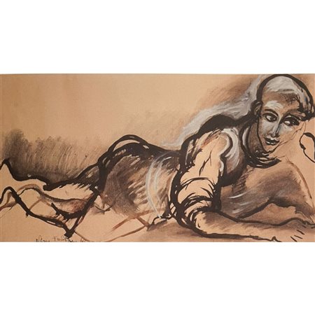 Lot 3 FONTANA NERIO - FIGURA FEMMINILE 41X75.5 TECNICA MISTA SU CARTA (1960)