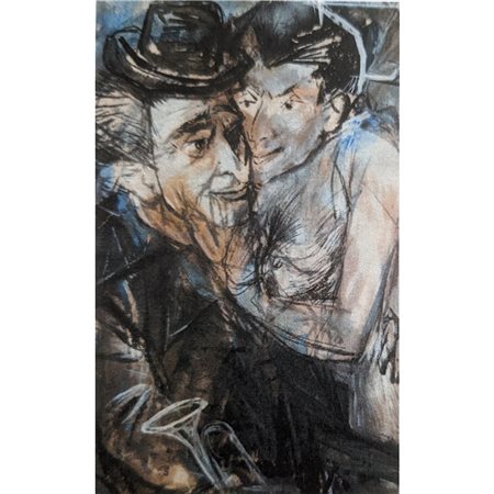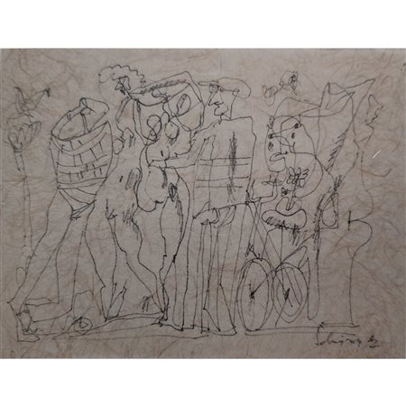 Lot 4 FONTANA NERIO - DONNA E MUSICISTA 84X54 TECNICA MISTA SU CARTA (1959)