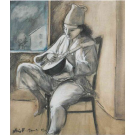 Lot 5 FONTANA NERIO - SUONATORE DI MANDOLINO 58X49 TECNICA MISTA SU CARTA (5/01)