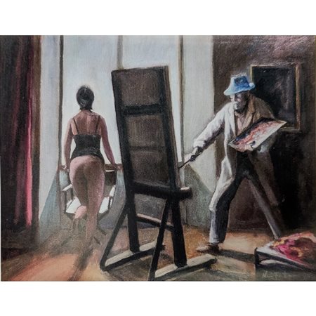 Lot 6 FONTANA NERIO - PITTORE E MODELLA 40X50 OLIO SU COMPENSATO (3/2000)