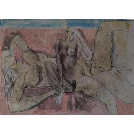 Lot 23 SCHWEIZER RICCARDO - NUDI FEMMINILI 50X70 TECNICA MISTA SU CARTA (MATITA E TEMPERA - 1985)