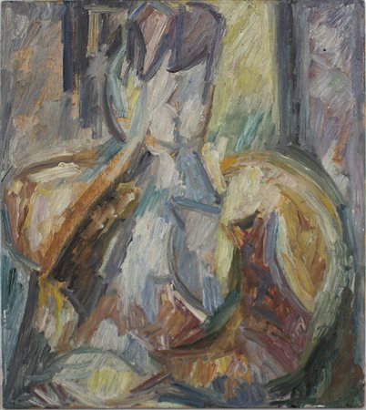 Lot 4 Michele De Palma, Olio su compensato, 46x41cm, Senza titolo, 1968; Firmato sul retro
