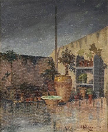Lot 7 Raffaele Spizzico, Olio su tela, 40x33cm, Terrazza di casa mia, 1938; Firmato in basso a destra; Esposto alla Mostra Prelitteriani della Cultura e dell'arte, Bari