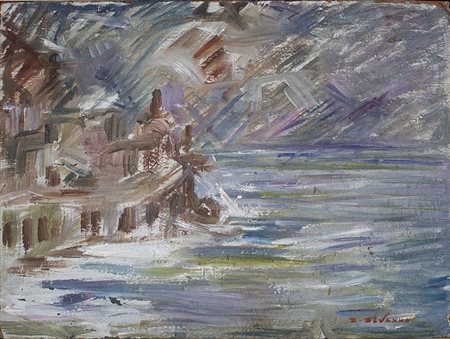 Lot 13 Domenico De Vanna, Olio su compensato, 39,5x29cm, Marina, 1967; Cartiglio sul retro del Professor Domenico De Vanna