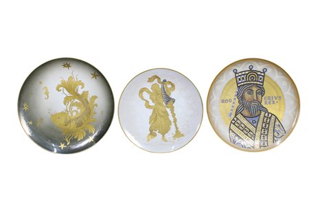 Lot 252 COLLEZIONE DI 9 PIATTI MARBELLI in porcellana incisi e decorati con smalti, oro zecchino e platino Italia XX secolo cm Ø 34 / cm Ø 30 / cm Ø 20