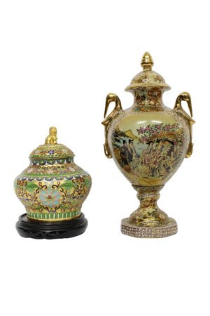 Lot 253 LOTTO COMPOSTO DA 1 VASO SATSUMA in porcellana ed 1 POTICHE cloisonne con coperchio Cina XX secolo h cm 30 x 16 / h cm 17 x 13