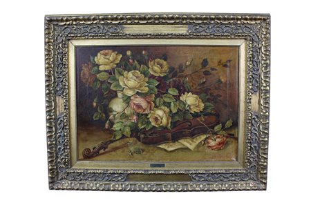 Lot 257 OLIO SU TELA raffigurante natura morta firmato Marinelli A. Italia XX secolo h cm 50 x 70 / h cm 79 x99