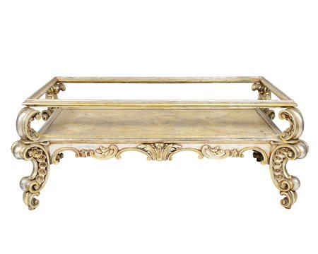 Lot 259 GRANDE TAVOLINO BACHECA in legno laccato e dorato con piano in vetro Sicilia XX secolo h cm 53 x 133 x 80