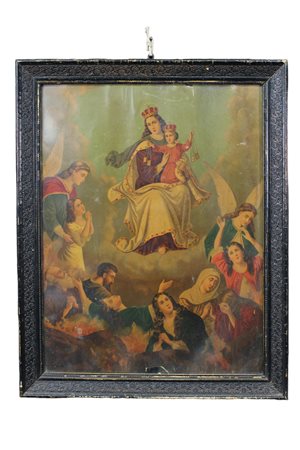 Lot 261 STAMPA SU CARTA COLORATA raffigurante scena sacra dentro cornice in legno ebanizzato e decorato Sicilia XX secolo h cm 80 x 64