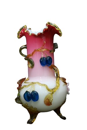 Lot 263 PARTICOLARE VASO in vetro di Murano decorato da fiori e frutti, rotture e incollagi Italia XX secolo h cm 26 x 22