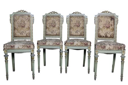 Lot 268 LOTTO DI 4 SEDIE in legno laccato e dorato Sicilia primi 900 h cm 98 x 40 x 37