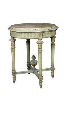 Lot 269 TAVOLINO in legno laccato verde con piano in marmo Sicilia primi 900 h cm 70 x Ø 60
