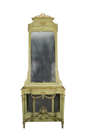 Lot 272 CONSOLLE CON SPECCHIERA in legno laccato verde e dorato Sicilia primi 900 h cm 309 x 111,5 x 48