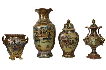 Lot 273 LOTTO DI 4 VASI in porcellana marcati SATSUMA (1 rotto e incollato) Cina XX secolo h cm 46 / h cm 36 / h cm 37 / h cm 22