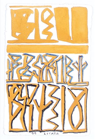 Lot 1 RICCARDO LICATA Torino 20/12/1929 Senza titolo, 1999 tecnica mista su carta cm. 17,5x11, firma e anno in basso al centro, dichiarazione d'autenticità dell'artista su foto.