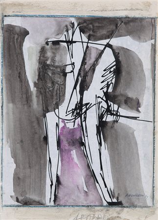 Lot 6 PIERO RAMBAUDI Torino 1906 - Torino 1999 Senza titolo, 1965 tempera su carta cm. 28x22, firma e anno in basso a destra.
