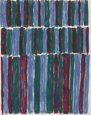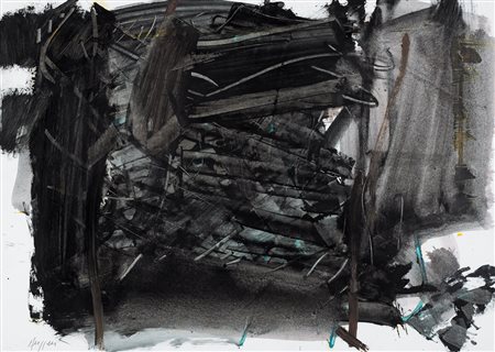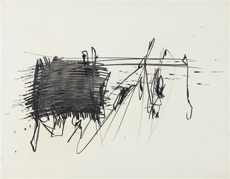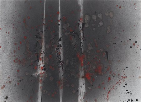 Lot 22 FRANCO ANGELI Roma 14/05/1935 - Roma 12/11/1988 Senza titolo, 1960 olio su carta cm. 35x48, opera non firmata, dichiarazione d'autenticità a cura di Francesco Gallo su foto, etichetta della Galleria Stefanini (FI) su foto, pubblicato sul catalogo "Idee da collezionare", Galleria Aurelio Stefanini (FI), 2005, pagina 23.