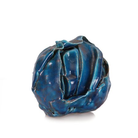 Lot 8 CARLO ZAULI Faenza 1926 - 2002 Sfera, 1979 scultura in maiolica con smalto turchese cm. 15x11x13; pezzo unico, firma al retro, opera registrata presso il Museo Carlo Zauli come da certificazione allagata con misure errate.